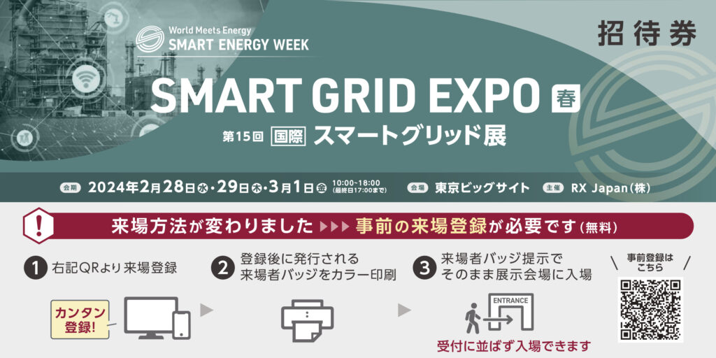 弊社は2024年2月28日(水)~3月1日(金)に東京ビッグサイトにて開催しております「第15回 [国際]スマートグリッド EXPO[春]」へ出展しております。