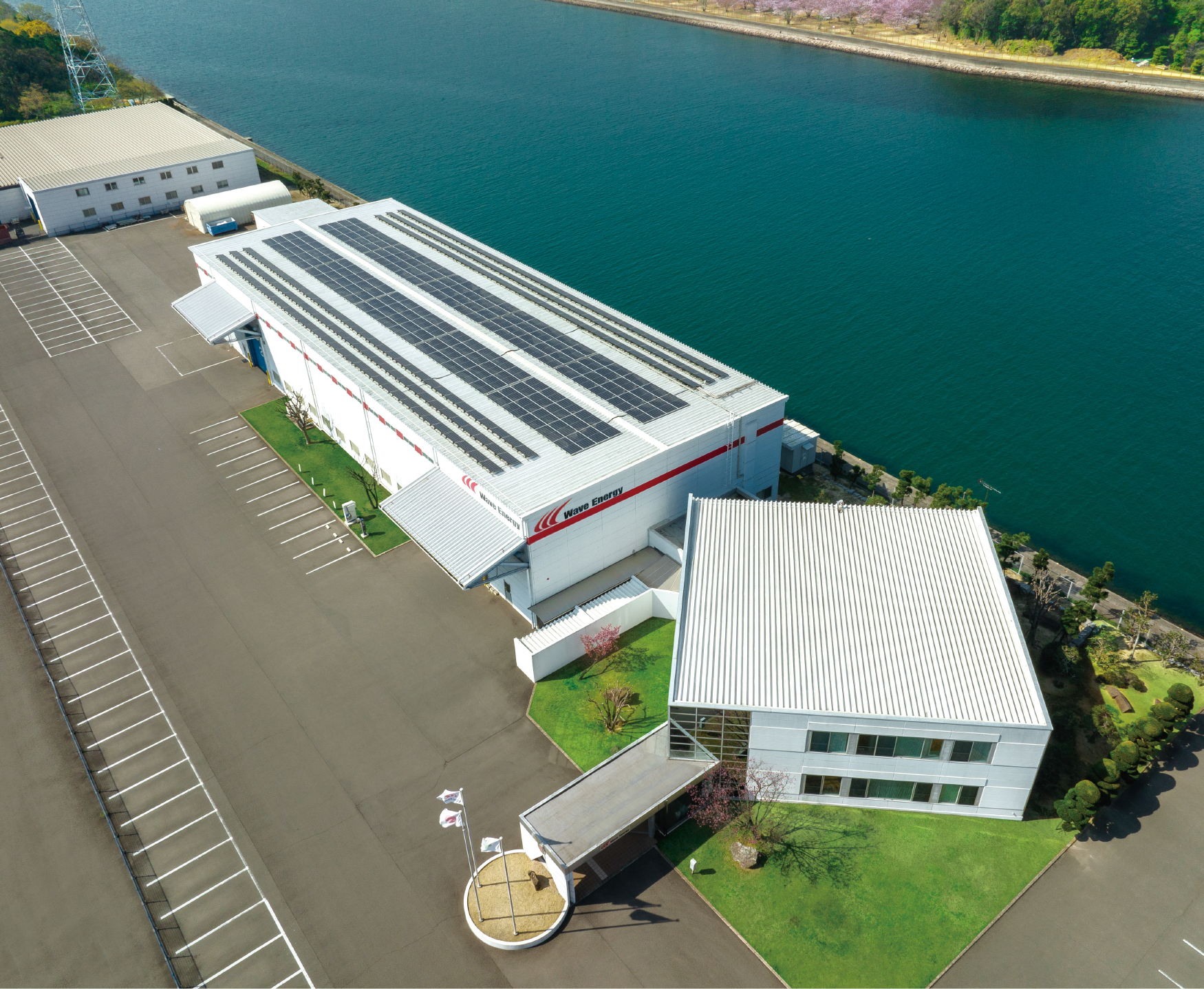 四国事業所第一工場では自家消費型太陽光発電システムが稼働しており、多くの電気を再生可能エネルギーで賄うことができています。2024年内にはソーラーカーポートおよび蓄電池設備を導入、設置して、事業活動で消費するエネルギーの100%再生可能エネルギー化を目指しています。WaveEnergyは再生可能エネルギー製品を提供する側として、また再生可能エネルギーを消費する側としても、脱炭素社会の実現に向けた取り組みを続けます。