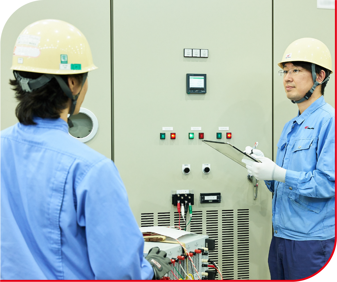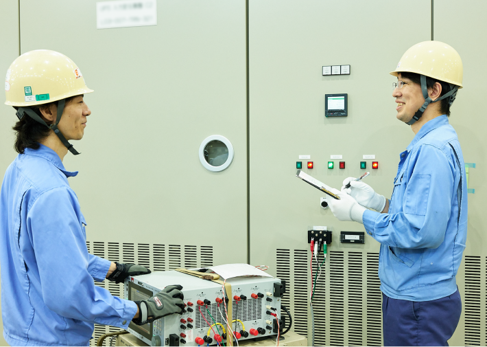 努力すればするほど知識や技術が身に付き、スキルアップできる環境だと思います。淡々と与えられた業務をこなすことを歓迎する職場もあると思いますが、当社では主体的に新たな仕事に取り組むことを否定されたり、限定されたりすることがありません。具体的に私は電気試験の効率向上の改善提案や試験手順の標準化に取り組みました。実際、それは与えられた仕事の範囲ではありませんでしたが、上司や先輩はそれを歓迎してくれ、評価してもらえました。それ以来、当社は社員が主体的に挑戦し、成長できる環境だということを後輩にも伝えて、成長につなげられるよう指導しています。