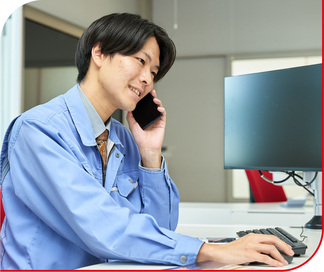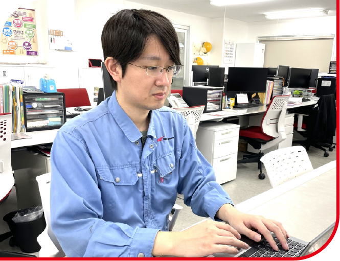 1日のタスク(やるべきこと)の確認の後、メールチェックを行います。そこで、優先順位をつけ、特に緊急の様が無ければ、タスクに基づき業務を行います。また、グループウェアで営業部内のスケジュールも確認し、必要があれば社内会議に参加し、部署内での進捗状況を共有しています。私のメインの業務は見積作成やお客様からのメール対応等ですが、見積もりを作成するにあたり、技術部や製造部などの意見を共有しながら作成するので、社内でのコミュニケーションも大切です。
