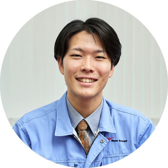 私は高専の電気科出身なので、電気に関わる仕事ができれば良いなと考えていました。就職セミナーでWaveEnergyのことを知り、その後ホームページの社員紹介を見たり、会社見学に参加する中で考え方や雰囲気が自分に合いそうだと親近感を感じて応募しました。採用面接でもあまりかしこまらず、気さくに接してくれたので、人付き合いが得意でない自分でも波長が合いそうだなと思い入社しました。