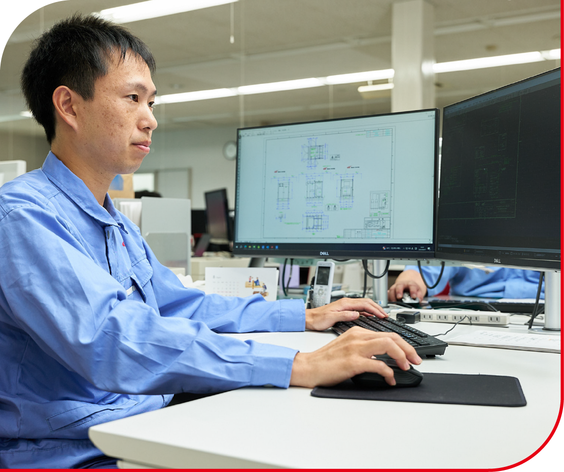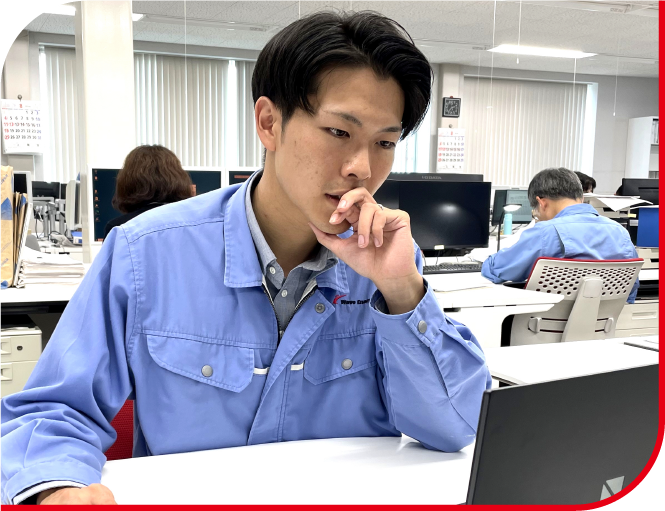当社の製品は全てオーダメイドなので、それぞれのお客様に合わせた提案を行います。そのためには自社製品の理解だけでなく、電気の技術的な知識が必要になります。当社には専門的な知識を持った先輩が多くいますので、指導を受けながら学ぶことができる環境が整っています。最近は、CADソフトを使い構造設計の作図にも挑戦し、製造や品質管理など他部署との連携もスムーズになりました。スキルアップにより、お客様へのご提案の幅も広げられると思っています。また、電機分野における資格取得についても勉強中です。