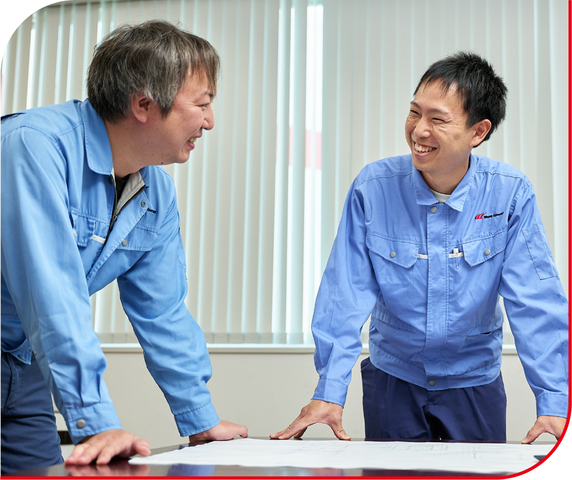 CADソフトを使った作図以外にも、Wave Energyの製品の一部の製作を依頼している協力会社様との打合せも、私の大切な仕事です。協力会社様からくるWave Energyの製品図面についての質問に対して、間違いがないように気をつけて回答しています。場合によっては、協力会社様の工場に直接訪問して打合せをすることもあります。大型で複雑なWave Energyの製品は様々な協力会社様によって支えられている部分も多く、窓口の私がしっかりと対応するようにしています。